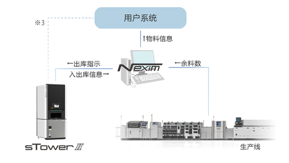 與綜合生產系統Nexim搭配使用時,可根據生產計劃,或料盡預告完成自動出庫。