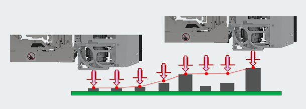 根據(jù)要貼裝的元件種類(lèi)優(yōu)化貼裝動(dòng)作,其中包括選擇穩(wěn)定且合適的貼裝速度以根據(jù)元件高度消除Z軸行程的浪費(fèi)等,這樣除了能靈活應(yīng)對(duì)各種元件外,同時(shí)還實(shí)現(xiàn)了周期時(shí)間的提升
